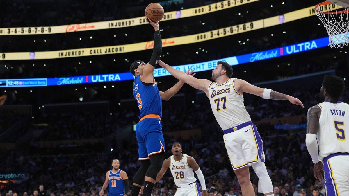 LOS ANGELES – Perhaps the most impressive thing about the Los Angeles Lakers’ 110-97 win against the New York Knicks on Sunday was the defense. The Knicks came into the game third in the NBA in offensive rating at 119.5. They’ve been scoring 117.2 points per game, good enough for ninth in the league. But they ran into an inspired Lakers defense, a performance that Luka Doncic would like to see more of.