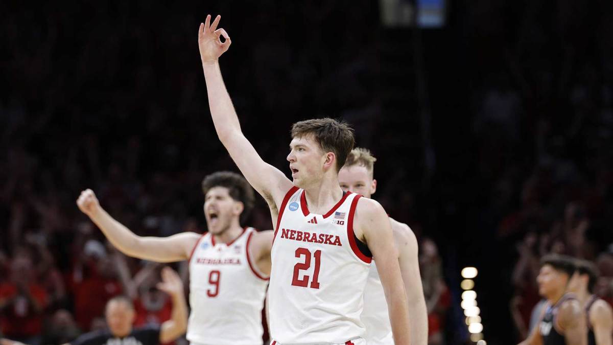 Nebraska's Pryce Sandfort went off in the first half. His point total reached 17 with around five minutes to go in the half after he started 5-7 from beyond the arc and 2-2 from the line.